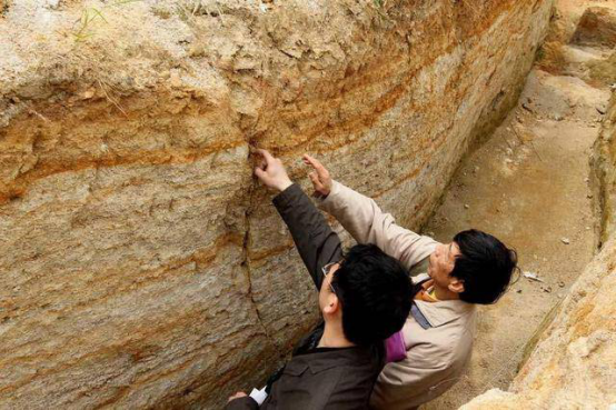 探槽是在挖掘成長條形且兩壁常為傾斜上寬下窄的槽子,其斷面有梯形或階梯型兩種。較深的探槽兩壁要進行必要的支護以策安全。探槽一般在覆蓋土層小于3.0m時使用。它適用于了解地質構造線、斷裂破碎帶寬度、地層分界線、巖脈寬度及其延伸方向和采取原狀土試樣等。