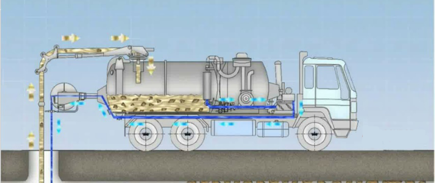 高壓水車把分段的兩檢查井向井室內(nèi)灌水,使用疏通器攪拌檢查井和污水管道內(nèi)的污泥,使淤泥稀釋;人工要配合機(jī)械不斷地?cái)噭?dòng)淤泥直至淤泥稀釋到水中。